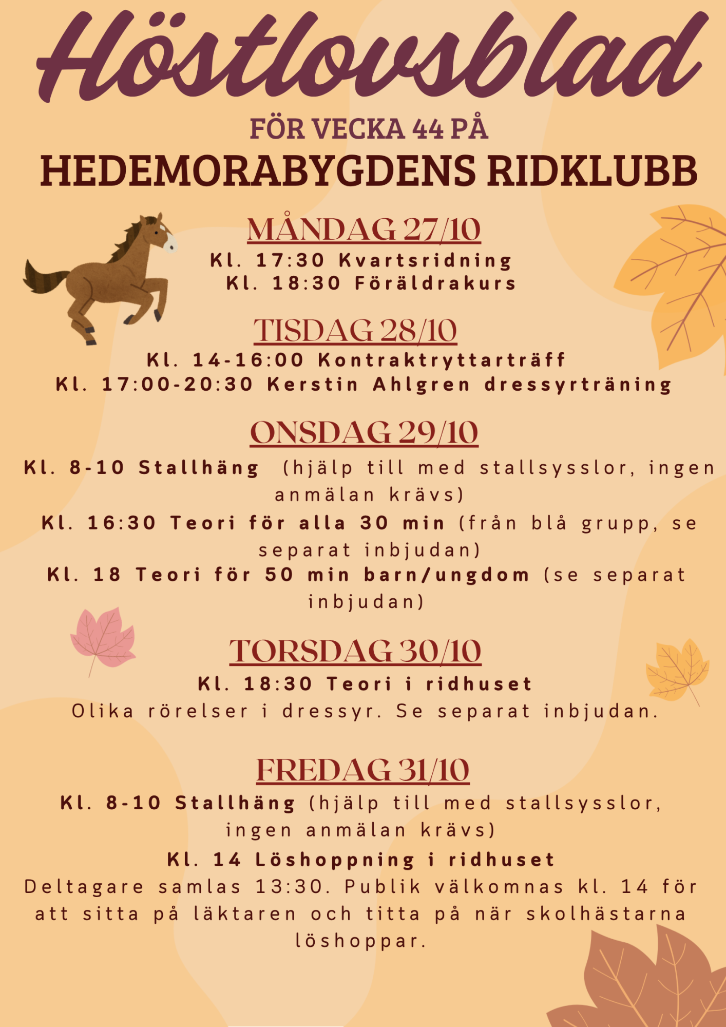Välkommen till Hedemorabygdens ridklubb!